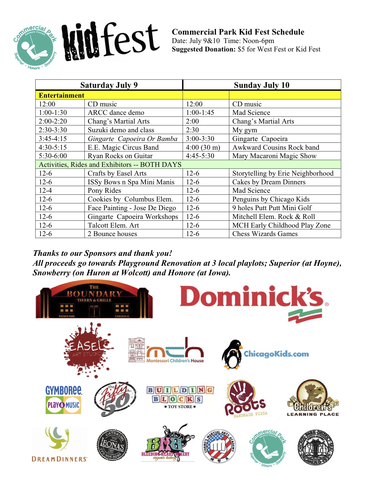 Categories Events Kid Fest Entertainment Schedule Announced! Post author By CPAC Post date July 6, 2011 No Comments on Kid Fest Entertainment Schedule Announced! Help us reach other neighbors and share this:Tweet Click to email a link to a friend (Opens in new window) Email More Click to print (Opens in new window) Print Click to share on Reddit (Opens in new window) Reddit Share on Tumblr Click to share on WhatsApp (Opens in new window) WhatsApp Like Loading... ← Join the Celebration – Kid Fest 2011 → Turtles, Tunes & Tots – Tuesday, 7/12 no comments please
