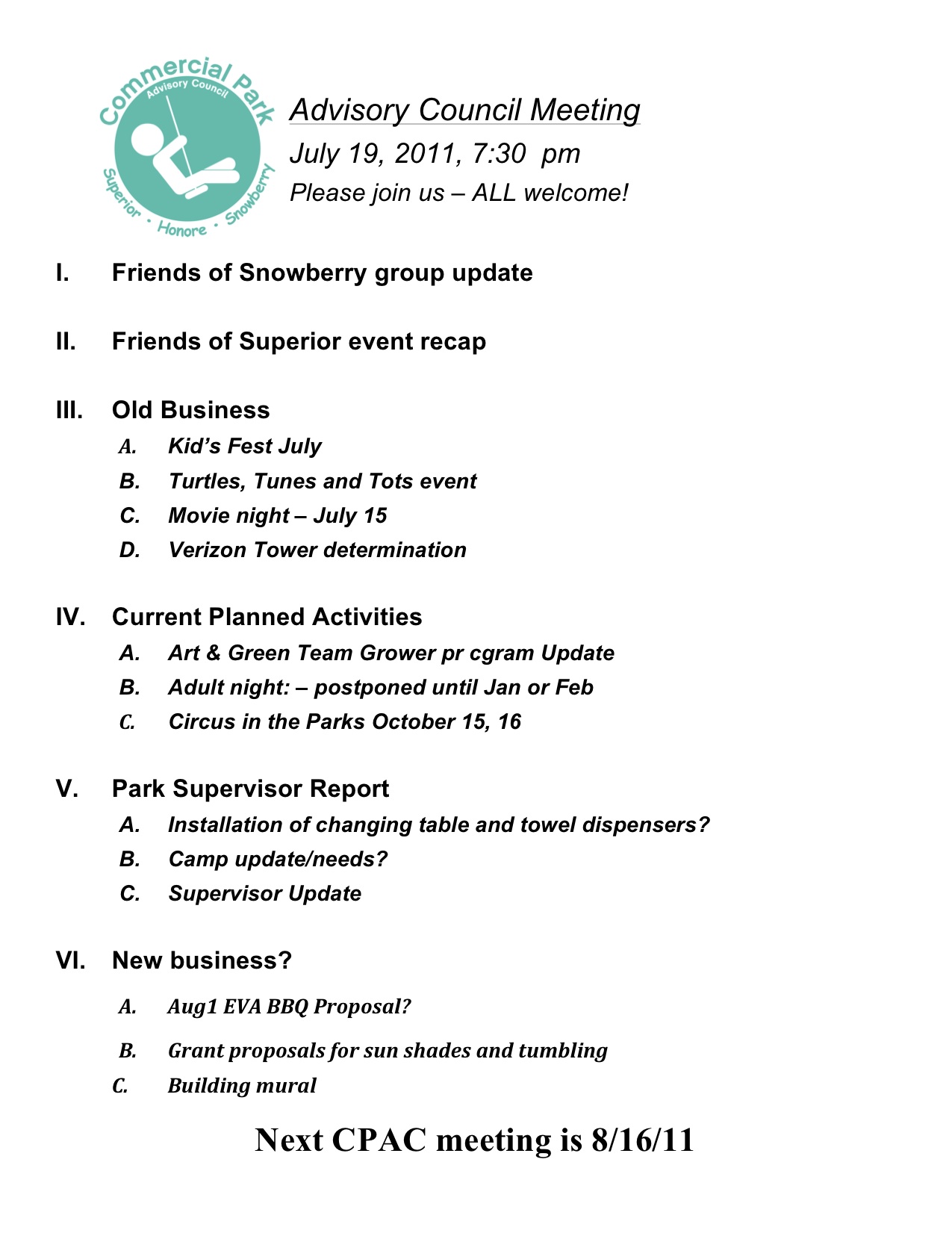Like last year – it will alternate between Snowberry (2nd and 4th weeks of the month) and at Commercial Park (1st and 3rd weeks) at 4pm.
