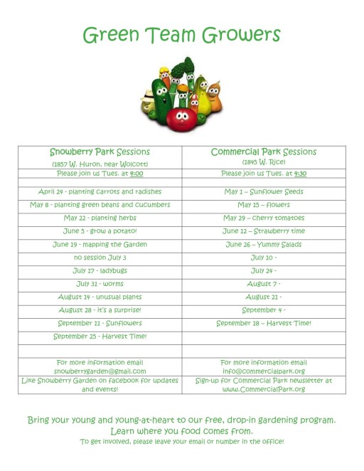 Green Team Growers is back and starts April 20th at Snowberry Park