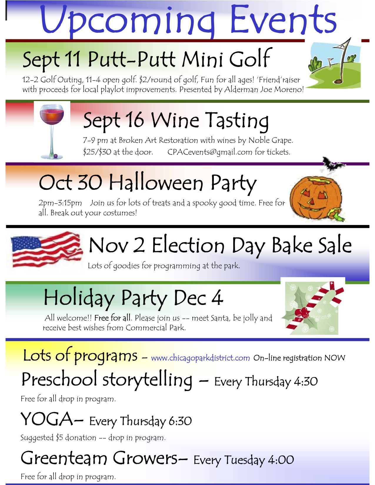 Also, tomorrow night is the monthly CPAC meeting. Some things on the agenda include: Earth Day follow-up, update on meeting with Alderman Moreno, Summer events at the park, and more. Please join us. The meeting is open to all interested in attending. 7:30pm in the Commercial Park field house. Hope to see you there